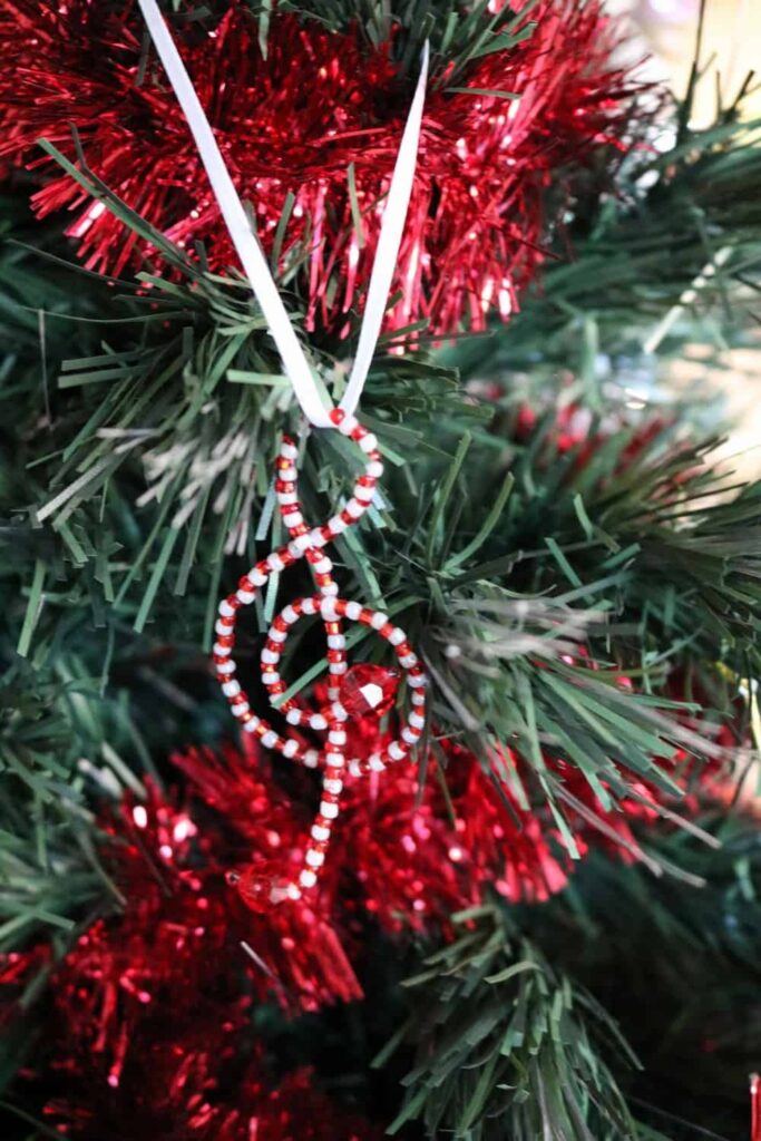 I made these wire and bead ornaments for gifts for my piano students several years ago, and kept one for myself. This is the treble clef.